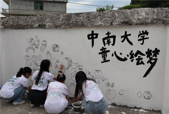 【企媒创氪快讯】2024年8月18日至24日,中南大学“童心绘梦”支教团赴湖南省娄底市新化县百兴村小学,开展为期一周的“三下乡”暑期社会实践支教活动。本次活动通过丰富多彩的美术课程,激发乡村儿童的创造力与审美能力。在为期7天的支教中,一场别开生面的“水果房子”主题墙绘活动,为当地孩子暑期生活注入创意与活力,也让师生在协作中收获了温暖与成长。